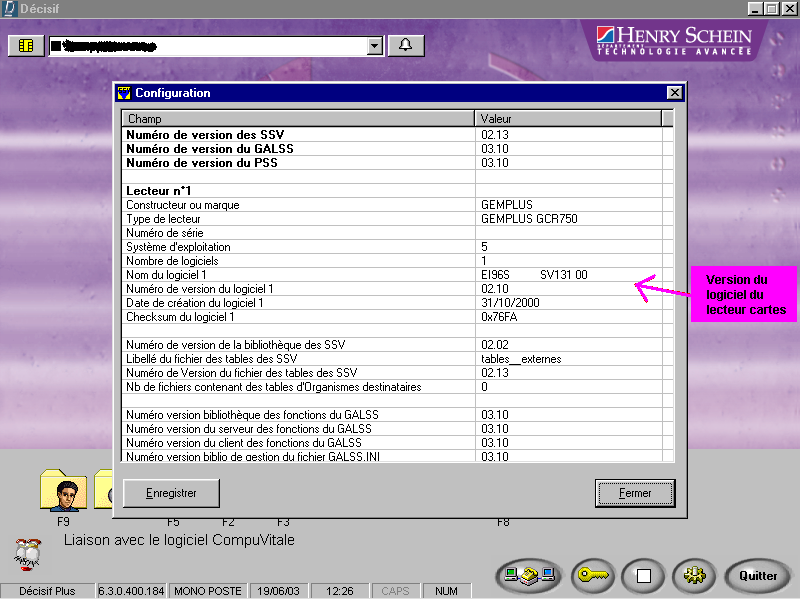 Maintenant vérifions la configuration du lecteur de carte vitale et la version du logiciel en cliquant sur Lire Configuration :