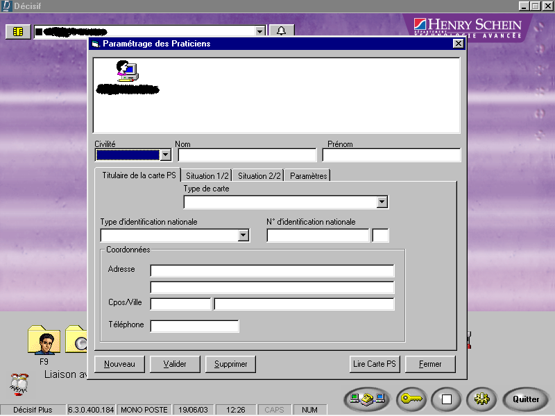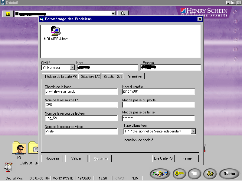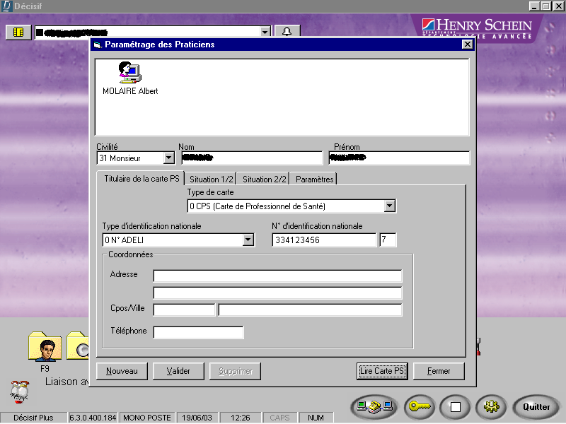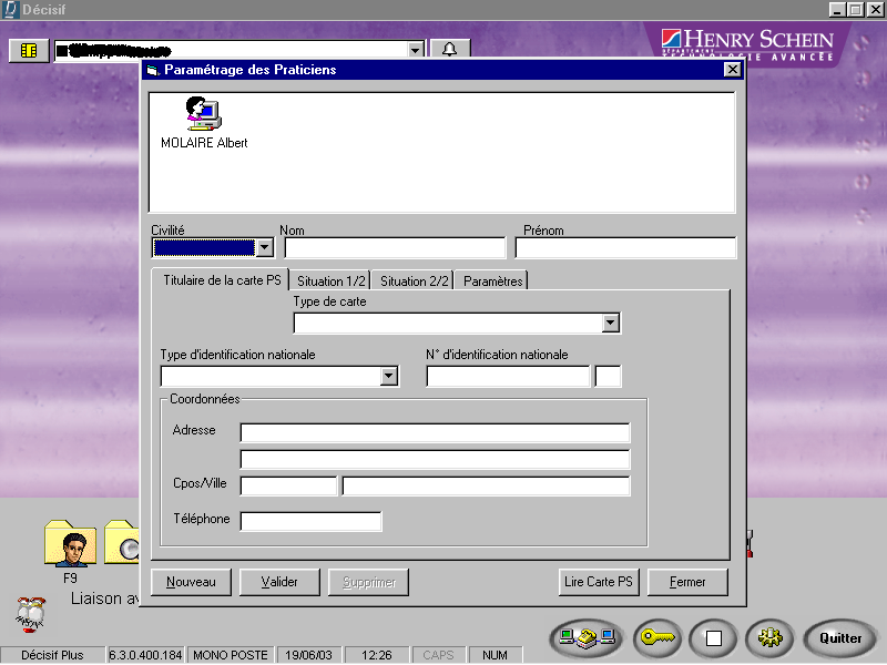 Une fois terminer, lancer Decisif et aller dans le module de paramétrage des praticiens pour